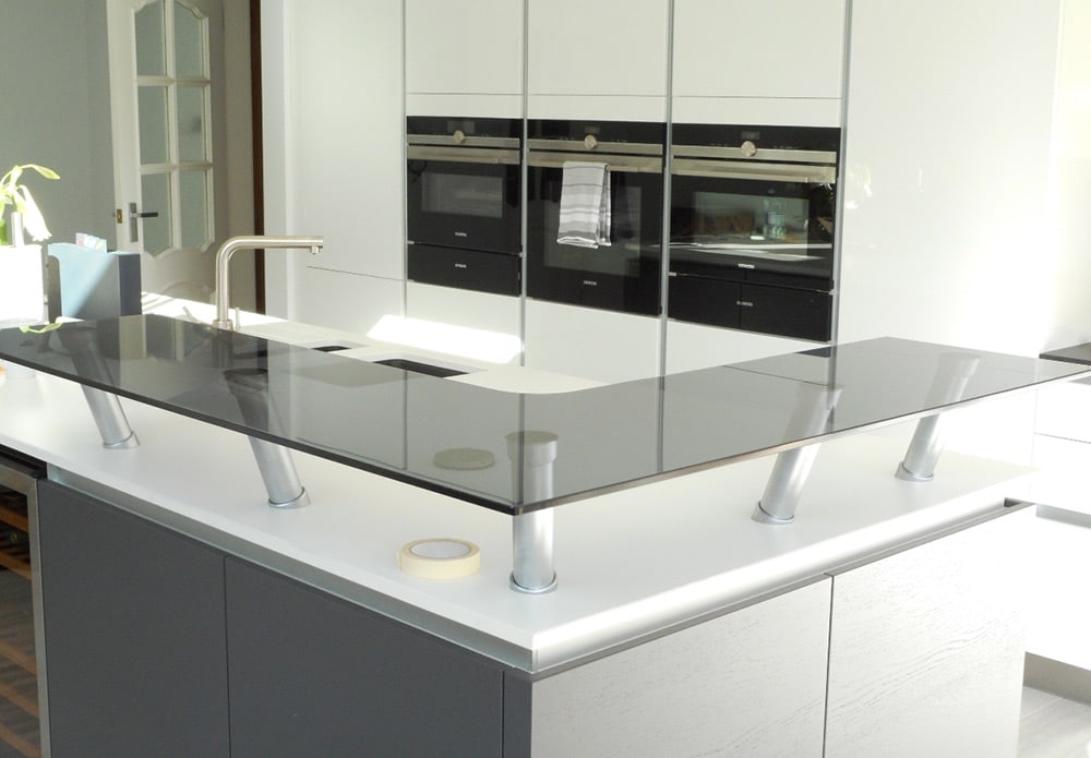 Generally standard glass does have a green tint and whilst in many cases is not visible front facing, it can be seen from the side. Whilst this is not detrimental to the aesthetics of the product in many applications, in certain circumstances it is beneficial to use a low-iron glass that is optically pure. This is why we use Opti glass (low iron) for all our splashbacks, thus ensuring vibrancy of colour, giving the glass best optical quality possible.